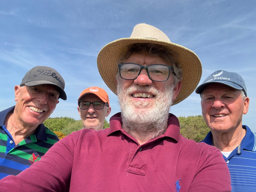 The story of the day has to be an incident that took place on the 10th /11th. We were getting ready to play our tee shots on the 11th when I heard a muffled shout of fore from the group behind, the wind being against it was difficult to make out, less than a second later I heard a whooshing noise as a golf ball travelling off the 10th tee hit me on the head knocking me to the ground. Fortunately I was wearing my new hat and it must have cushioned the blow as I am here now writing this blog.