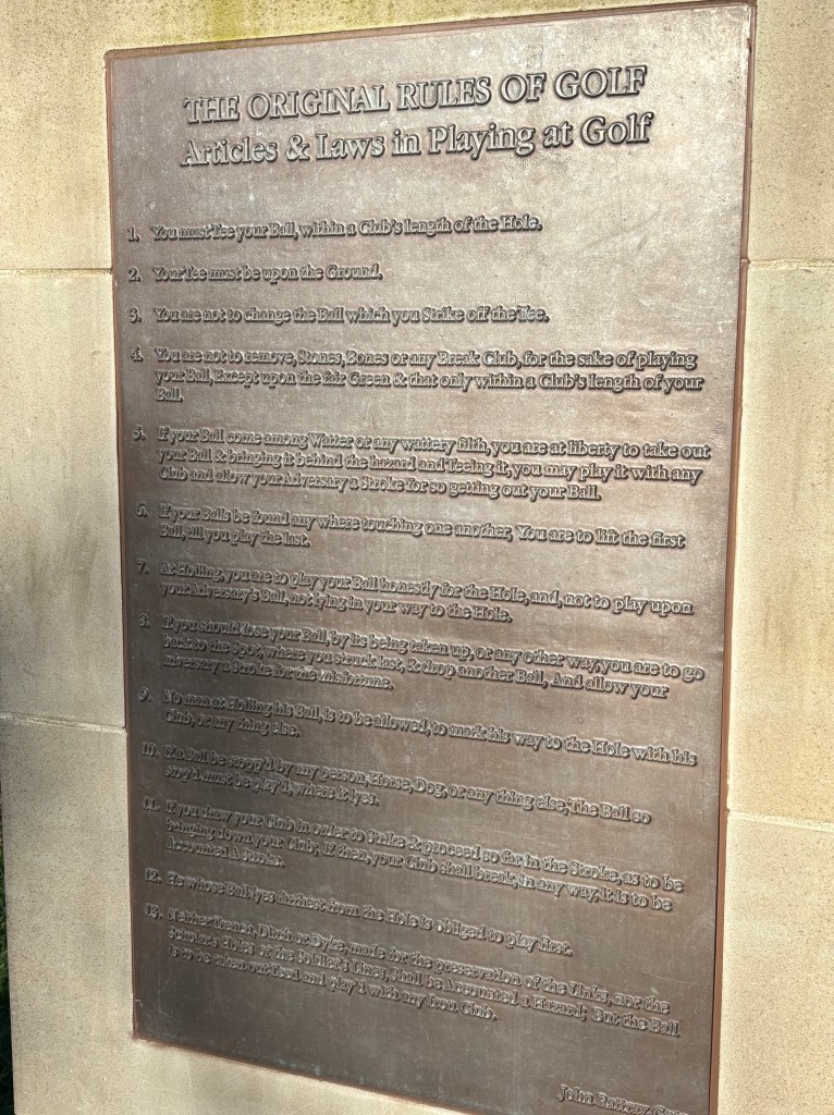 I went for a walk with Rob and the dog around his local park Lieth Links, only to come across the place where the rules of golf were written. Enjoyed the read no end. See if you can make out the rules.