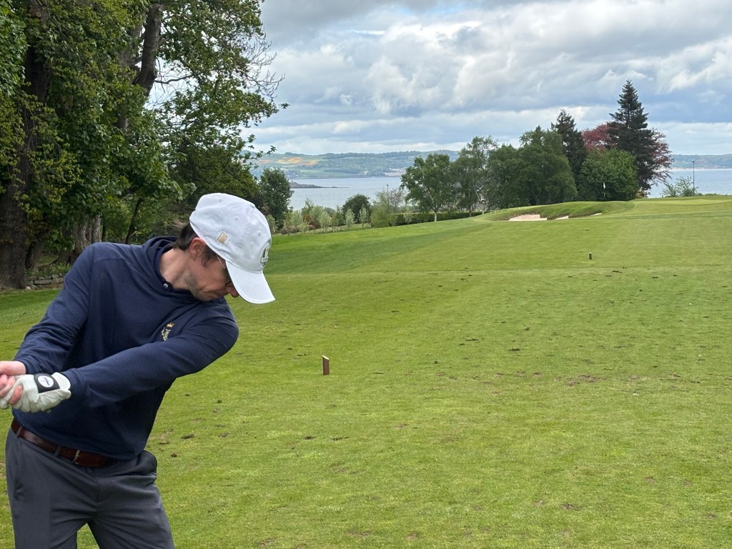 Went to, storm damaged range to loosen up and did a bit of putting before Alex and I strolled to the first tee. All this in freshly washed underwear and socks.